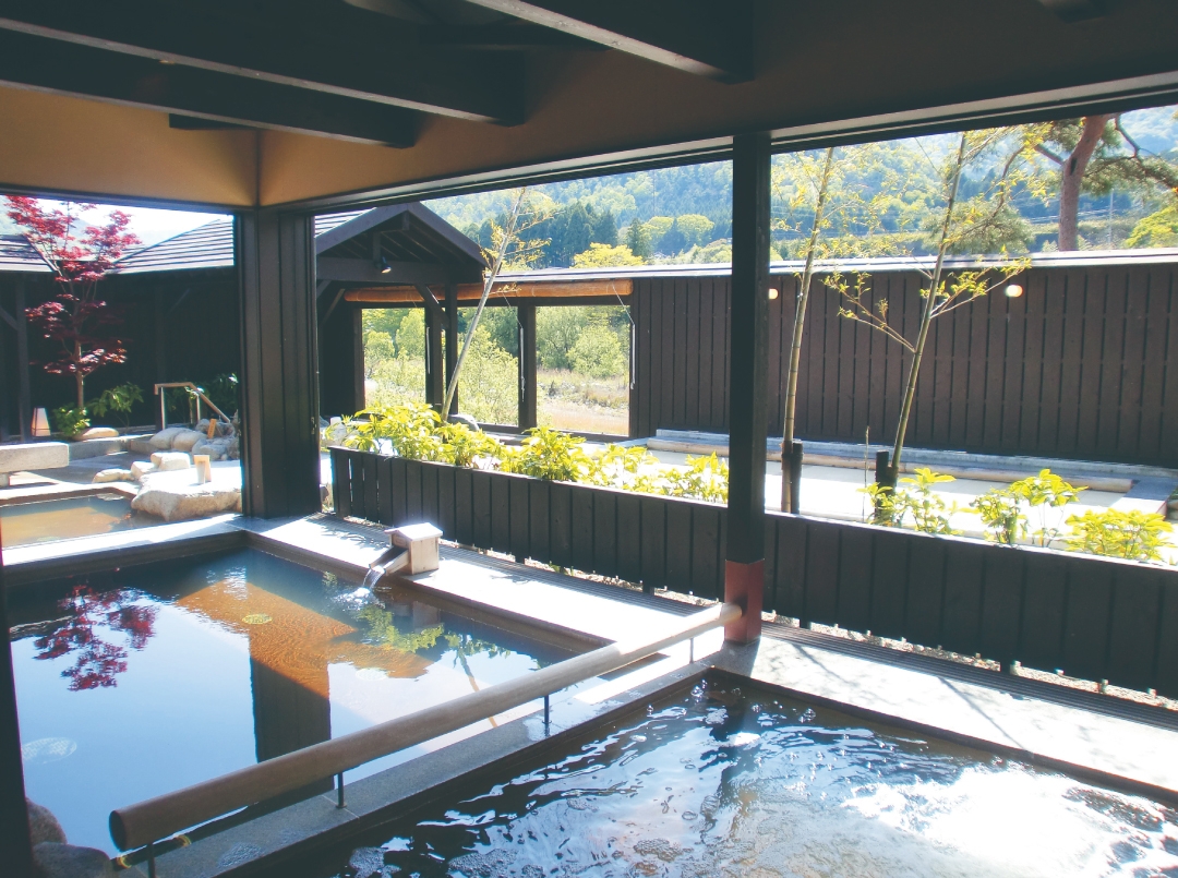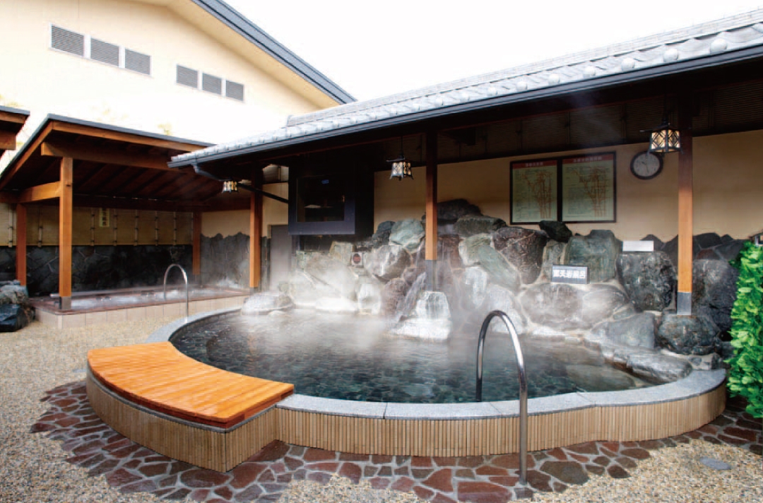 ラドン成分を含む天然温泉露天風呂や炭酸泉、大型岩盤房など癒しの温浴施設。