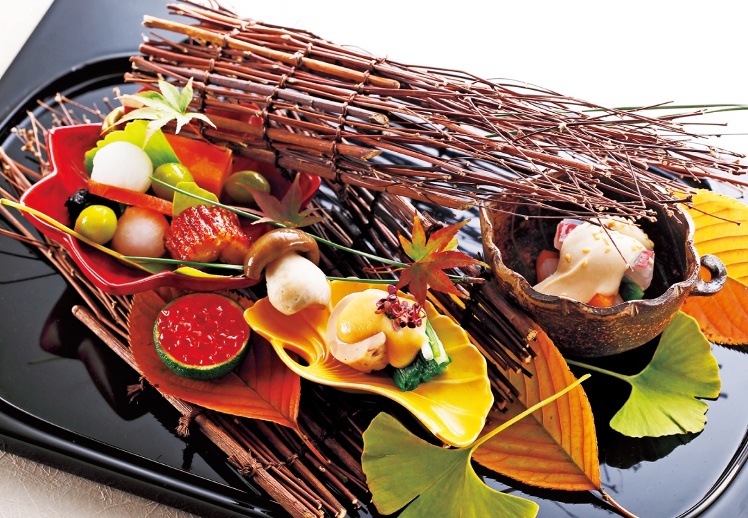 東山を借景とする日本庭園は移ろう季節を映します。京料理「入舟」では、一品ひと品丁寧な職人の技を尽くし、食材の旬をお愉しみいただきます。