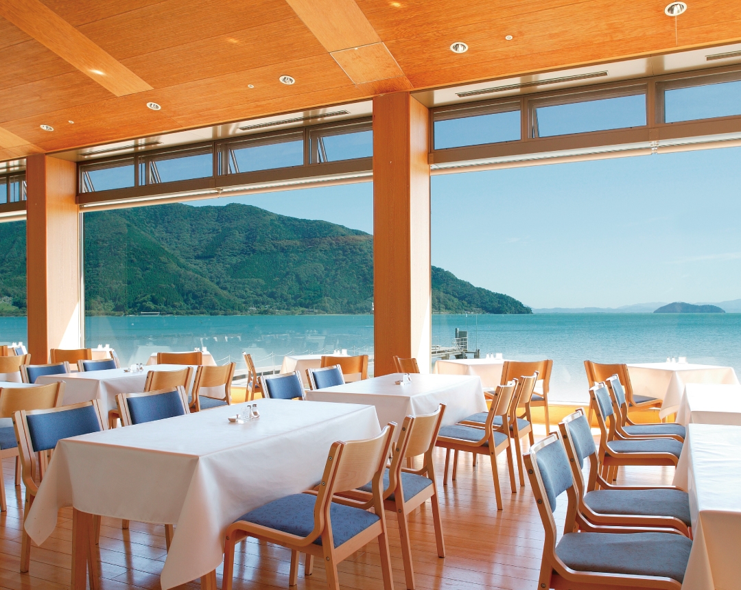 ゆるやかな時間の流れる湖畔のリゾート。 びわ湖を眺めながらお食事をお楽しみ頂けます。
