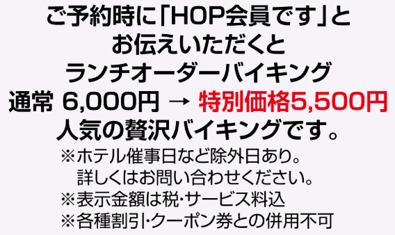 3種類いずれかのHOPカード又はHOPアプリのご提示で優待が受けられます。