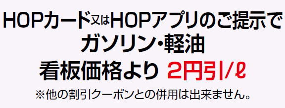 3種類いずれかのHOPカード又はHOPアプリのご提示で優待が受けられます。