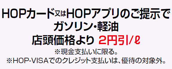 3種類いずれかのHOPカード又はHOPアプリのご提示で優待が受けられます。