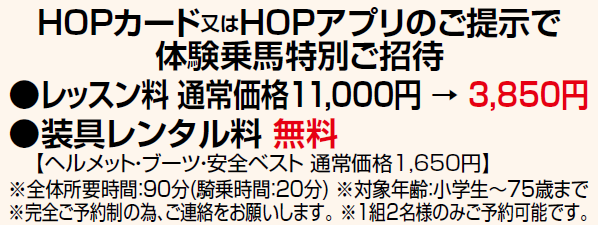3種類いずれかのHOPカード又はHOPアプリのご提示で優待が受けられます。