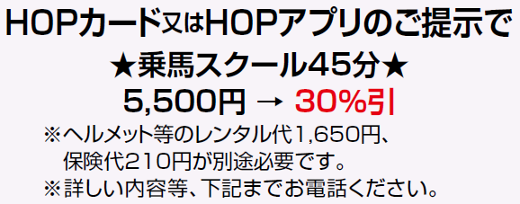 3種類いずれかのHOPカード又はHOPアプリのご提示で優待が受けられます。