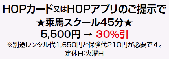 3種類いずれかのHOPカード又はHOPアプリのご提示で優待が受けられます。