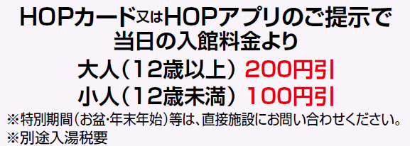 3種類いずれかのHOPカード又はHOPアプリのご提示で優待が受けられます。