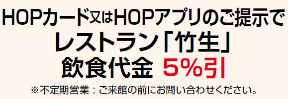 3種類いずれかのHOPカード又はHOPアプリのご提示で優待が受けられます。