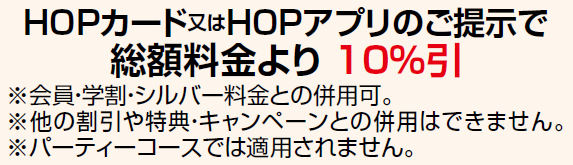 3種類いずれかのHOPカード又はHOPアプリのご提示で優待が受けられます。