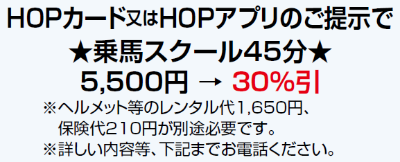 3種類いずれかのHOPカード又はHOPアプリのご提示で優待が受けられます。