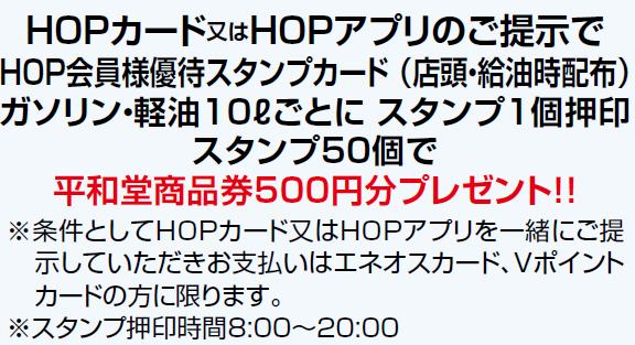 3種類いずれかのHOPカード又はHOPアプリのご提示で優待が受けられます。