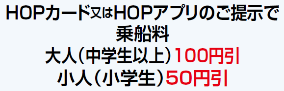 3種類いずれかのHOPカード又はHOPアプリのご提示で優待が受けられます。