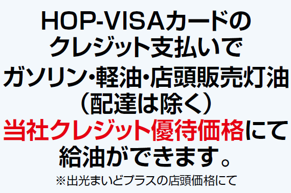 HOP-VISAカードでのVISAクレジット支払いの場合のみ優待が受けられます。