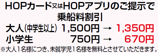 3種類いずれかのHOPカード又はHOPアプリのご提示で優待が受けられます。