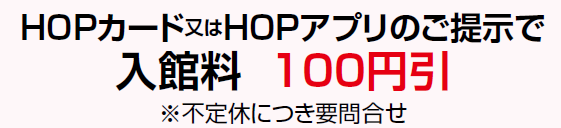 3種類いずれかのHOPカード又はHOPアプリのご提示で優待が受けられます。