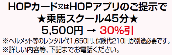 3種類いずれかのHOPカード又はHOPアプリのご提示で優待が受けられます。