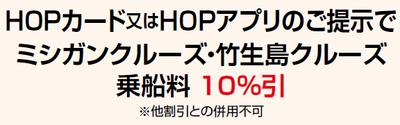 3種類いずれかのHOPカード又はHOPアプリのご提示で優待が受けられます。