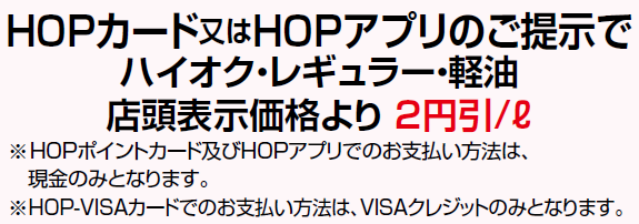 HOPカード又はHOPアプリのご提示で、オイル・洗車がお得に!!