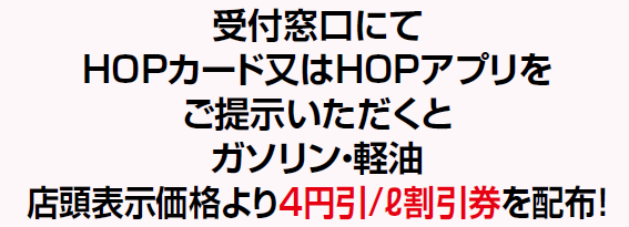 HOPカード又はHOPアプリのご提示で、オイル・洗車がお得に!!