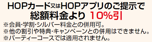 3種類いずれかのHOPカード又はHOPアプリのご提示で優待が受けられます。