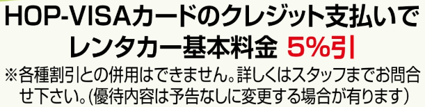HOP-VISAカードでのVISAクレジット支払いの場合のみ優待が受けられます。