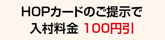 3種類いずれかのHOPカードのご提示で優待が受けられます。