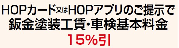 3種類いずれかのHOPカード又はHOPアプリのご提示で優待が受けられます。