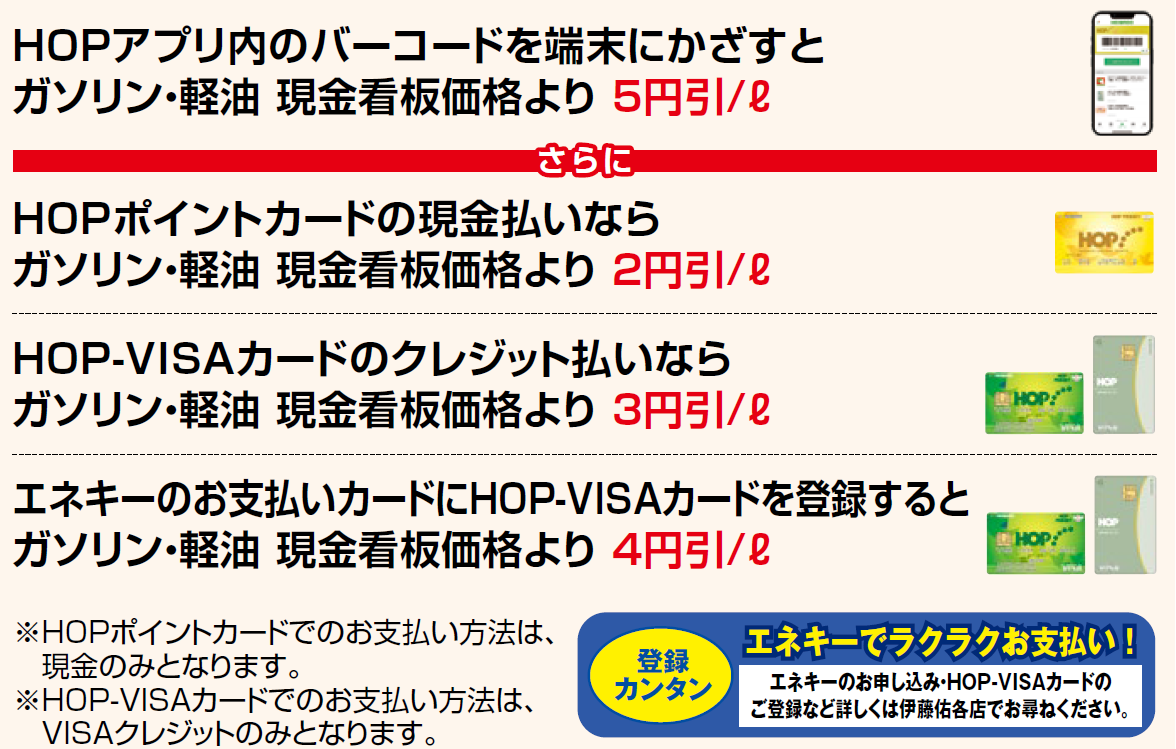 HOP-VISAカードでのクレジット支払いが出来ます。
