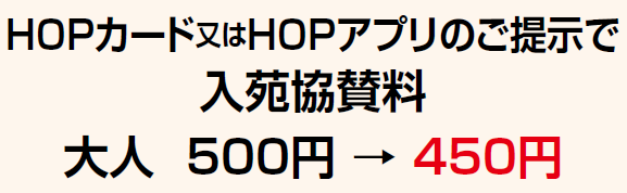 3種類いずれかのHOPカード又はHOPアプリのご提示で優待が受けられます。