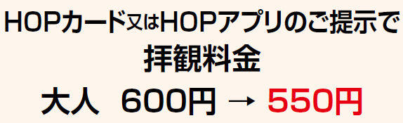 3種類いずれかのHOPカード又はHOPアプリのご提示で優待が受けられます。